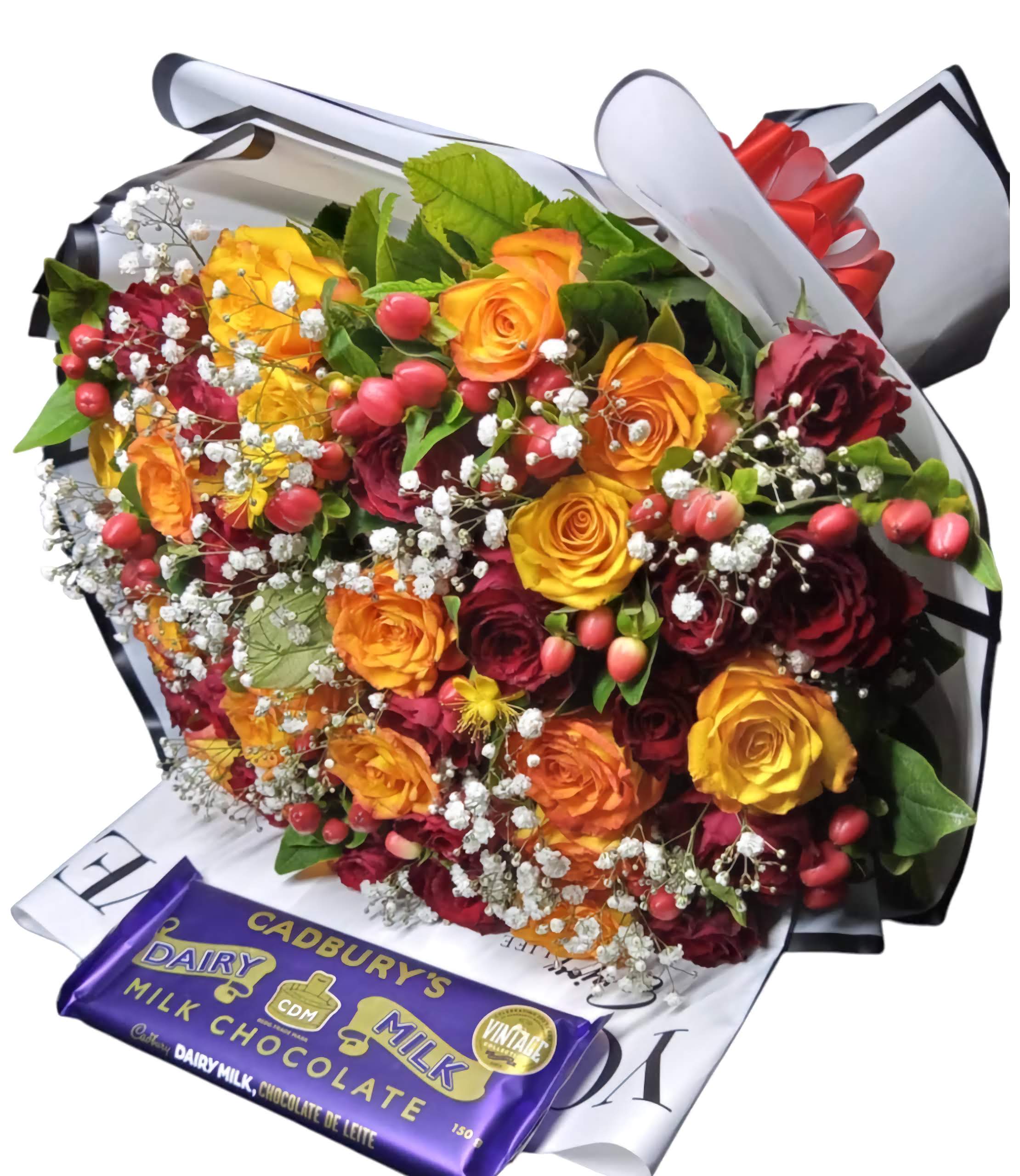 Whimsical Wonder Bouquet – Yellow & Red Roses with Cadbury Chocolate | Flower Delivery Nairobi